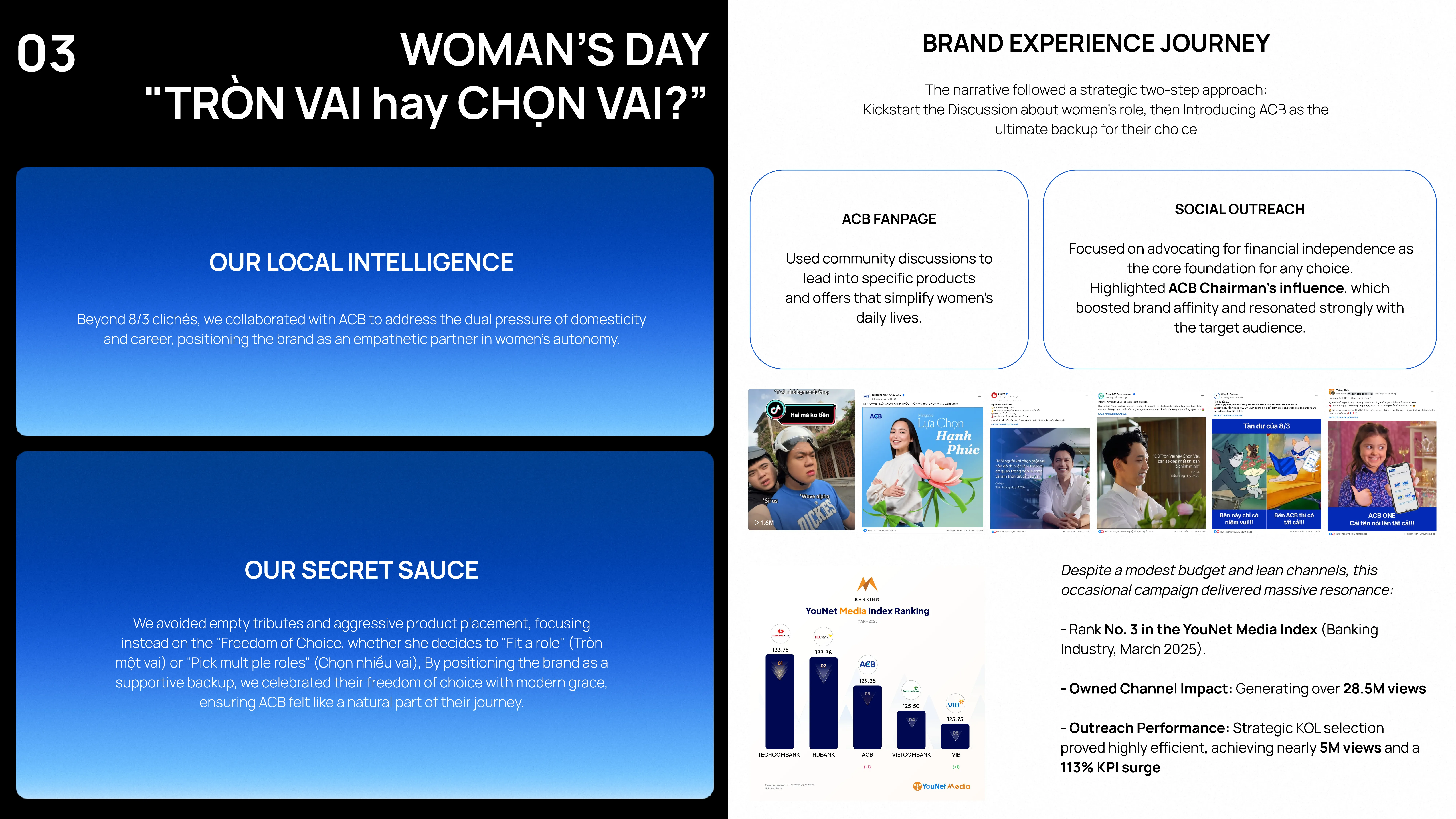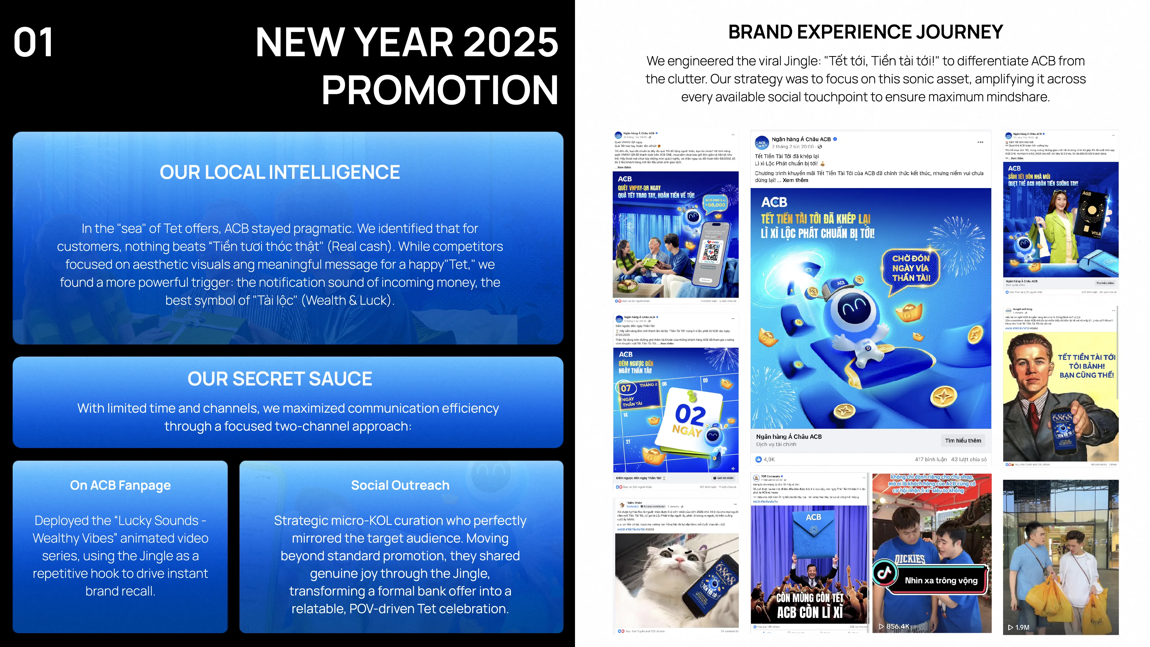 As a leading private bank, ACB continuously innovates to stay customer-centric. Our mission was to partner with Cheil Vietnam to educate and engage audiences through simple, touching narratives across their digital journey, seamlessly blending financial products with special occasions.